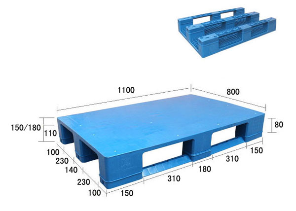 編 號(hào):GK50-3/4-1108川字平板塑料托盤 外尺寸(mm):1100*800*150/180 內(nèi)尺寸(mm): 動(dòng) 載(T):1 靜 載(T):4 貨 架(T):0.6